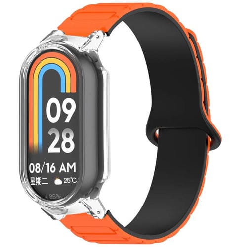 Correa de reloj de silicona magnética en forma de I para Xiaomi Smart Band 9/9 NFC PC Watch Frame (naranja + transparente)