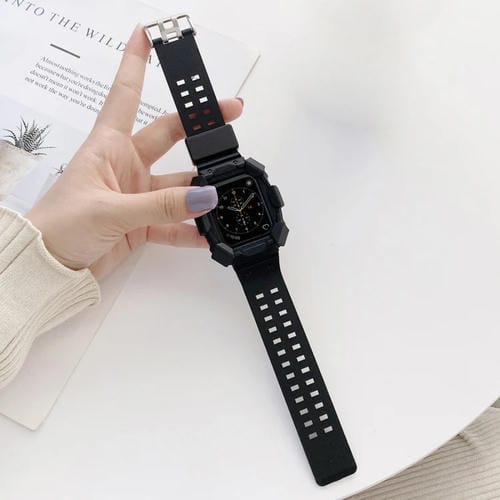 Correa de Reloj TPU Integrada Apple Watch Series 8 7 41mm SE 2 6 5 4 3 2 1 38 40mm (Negro)