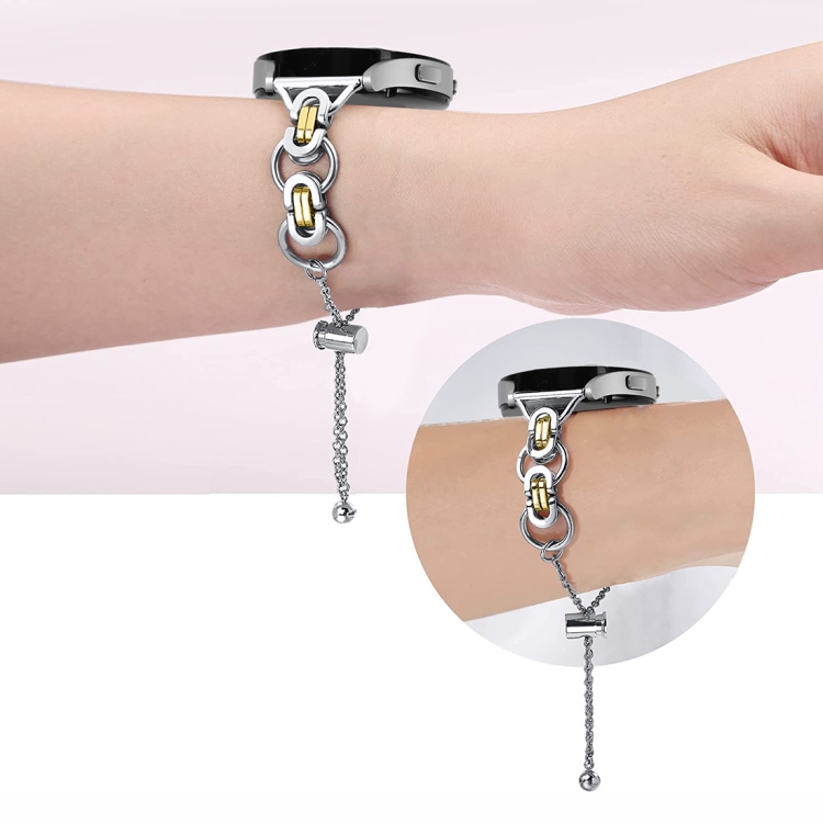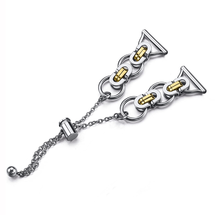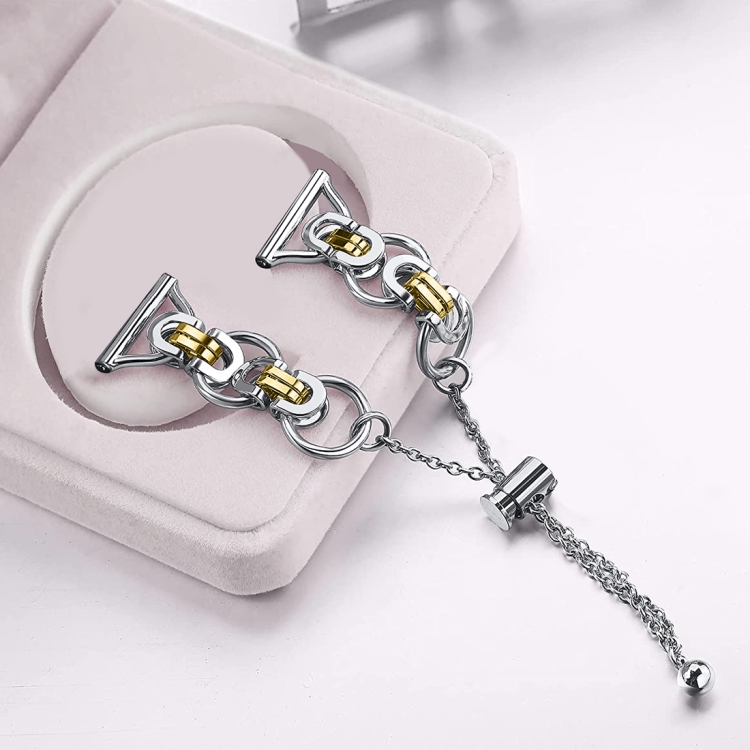 Correa de Reloj Estilo B con Cadena de Cuentas Un Solo Círculo 20mm (Oro Plateado)