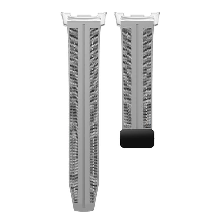 Correa de reloj híbrida de nailon y silicona con hebilla magnética plegable para Samsung Galaxy Watch8/Watch8 Classic (gris)
