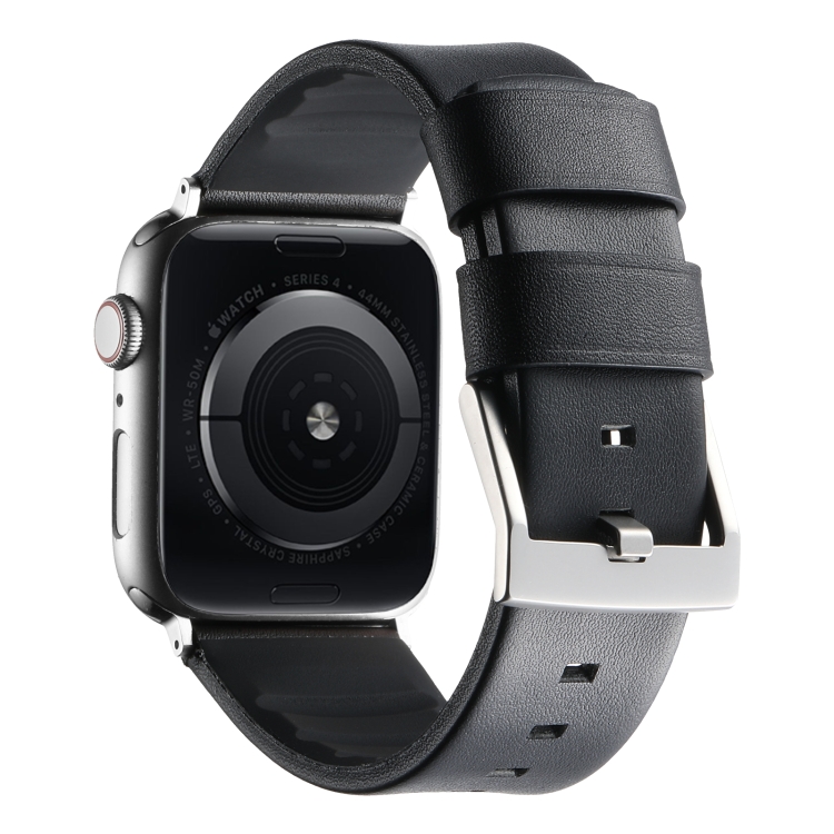 Correa de Reloj Híbrida Silicona y Cuero para Apple Watch Se 2022 40mm (Hebilla Plateada Negra)
