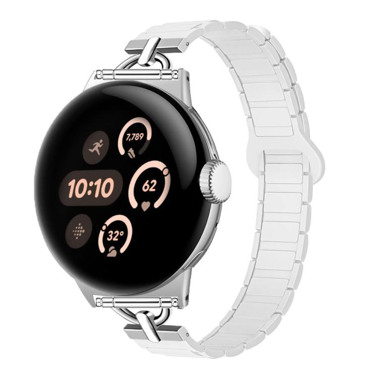 Correa de reloj magnética de silicona con tres cuentas en forma de D de 45 mm para Google Pixel Watch 4/3 (blanco cerámico)