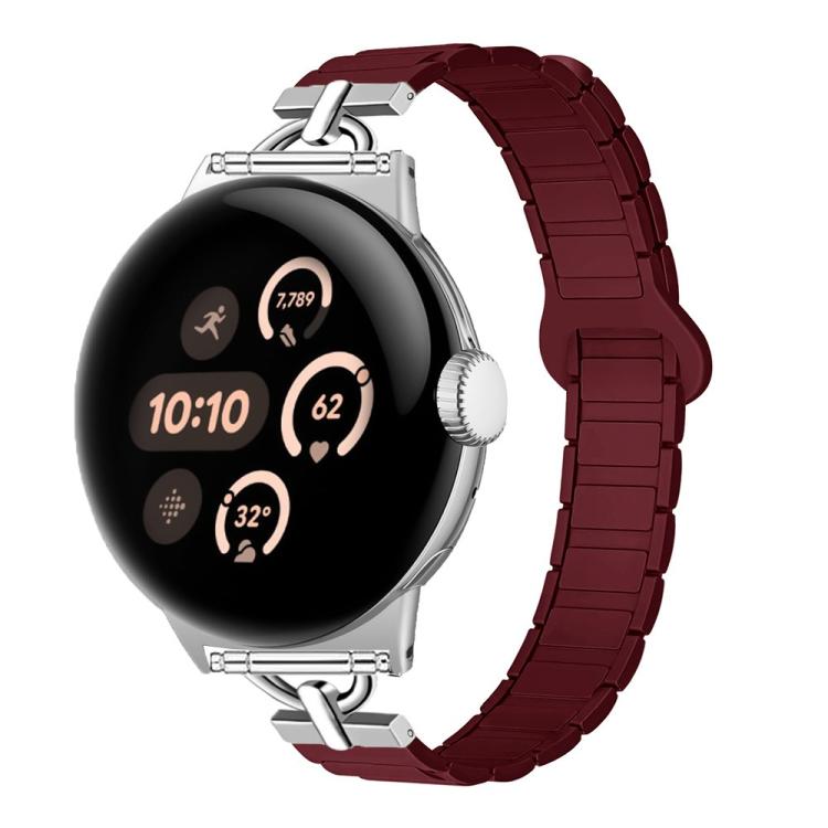 Correa de reloj magnética de silicona con tres cuentas en forma de D de 45 mm para Google Pixel Watch 4/3 (rojo vino)