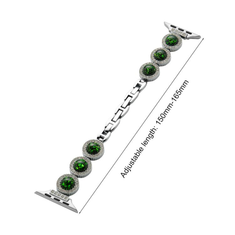 Correa de reloj metálica xDfind con diamantes brillantes para Apple Watch de 42/44/45/46/49 mm (plata con diamantes verdes).