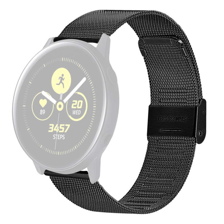 Correa de Repuesto Metal Acero Inoxidable Malla Fina Trenzada Doble Hebilla 20mm (Negro)