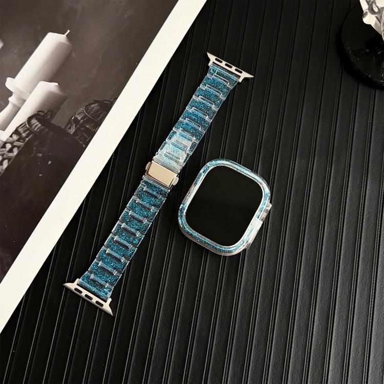 Correa de resina epoxi para Apple Watch de 40 mm/41 mm (color azul cambiante) con carcasa de PC Chameleon