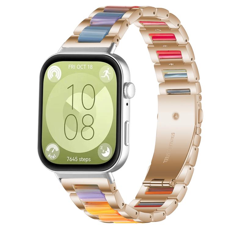 Correa de resina metálica de tres cuentas para Huawei Watch Fit4 / Fit4 Pro / Fit3 xDfind (arcoíris oro rosa)