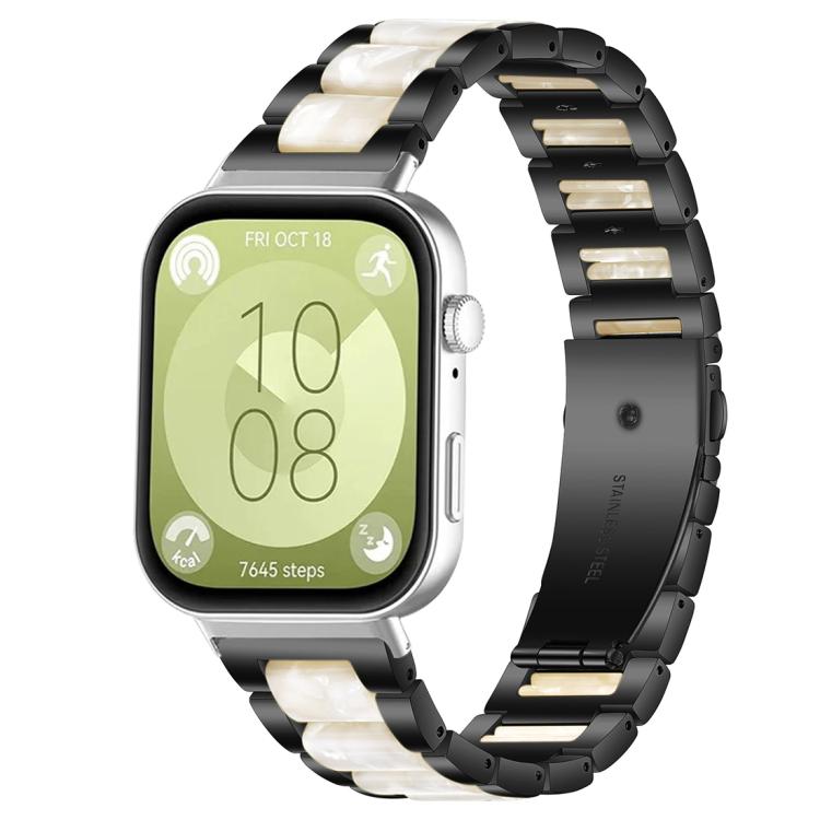 Correa de resina metálica de tres cuentas para Huawei Watch Fit4 / Fit4 Pro / Fit3 xDfind (negro y blanco)