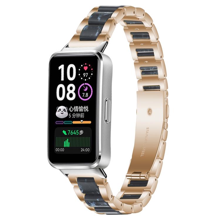 Correa de resina metálica de tres cuentas xDfind para Huawei Band 10/9/8 (oro rosa y azul)