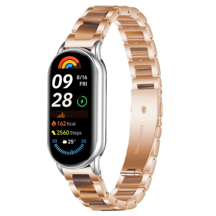 Correa de resina metálica de tres cuentas xDfind para Xiaomi Smart Band 10/9/8 (oro rosa y marrón)