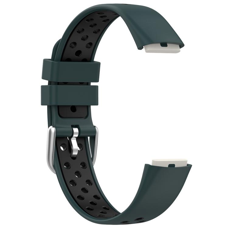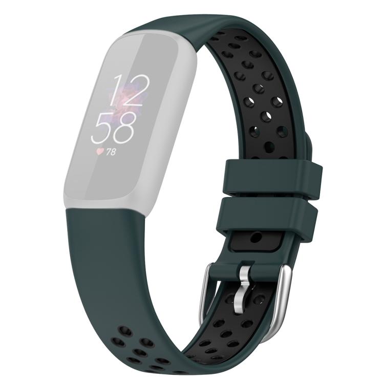 Correa de silicona bicolor con agujeros transpirables para Fitbit Luxe xDfind (verde oliva y negro)