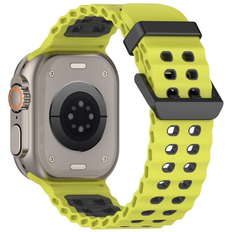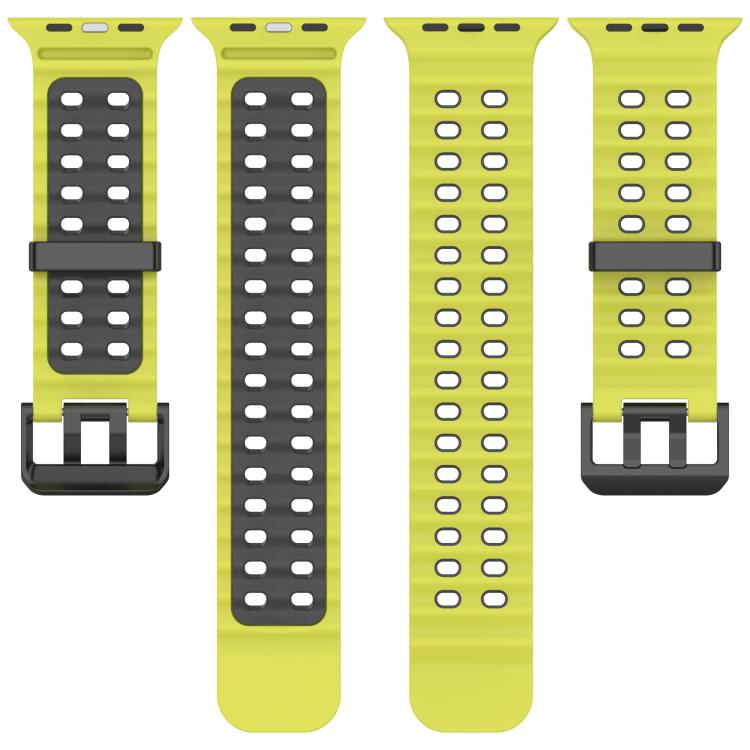 Correa de silicona bicolor con doble fila de agujeros para Apple Watch de 46 mm, 49 mm, 45 mm y 44 mm (gris limón)