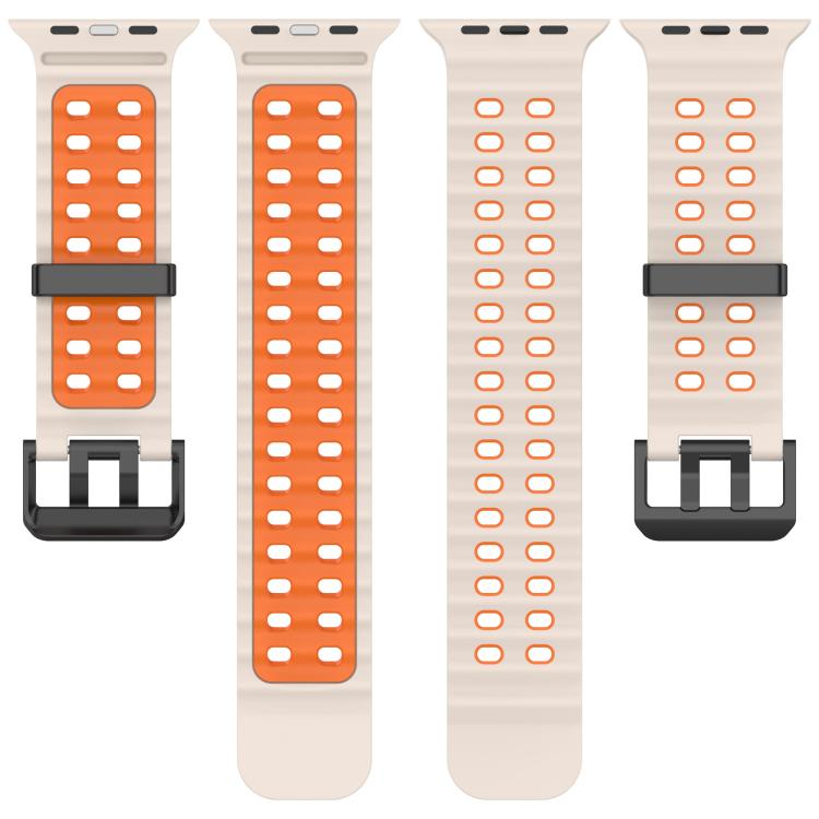 Correa de silicona bicolor con doble fila de agujeros para Apple Watch de 46 mm, 49 mm, 45 mm y 44 mm (naranja estrella)