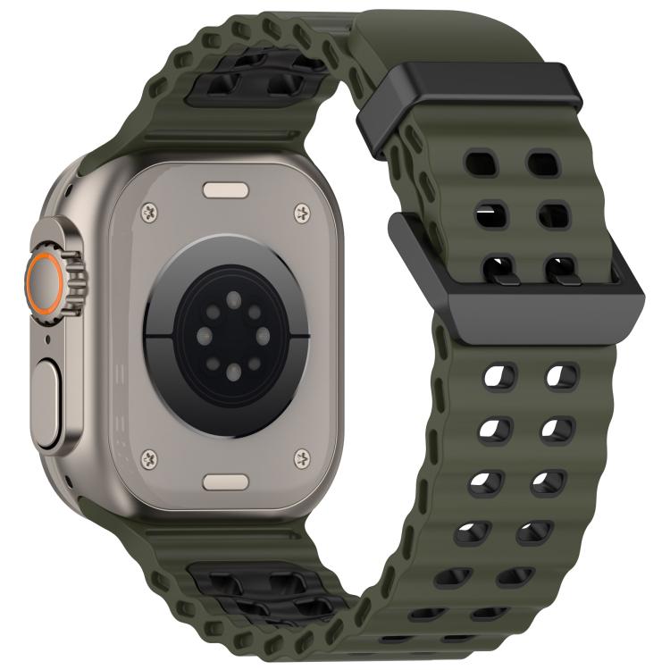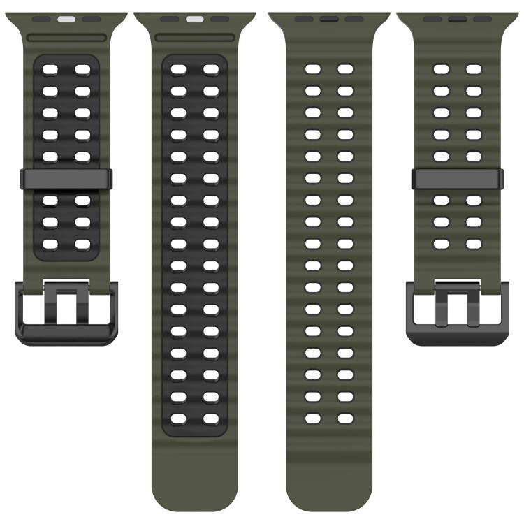 Correa de silicona bicolor con doble fila de agujeros para Apple Watch de 46 mm, 49 mm, 45 mm y 44 mm (verde militar y negro).