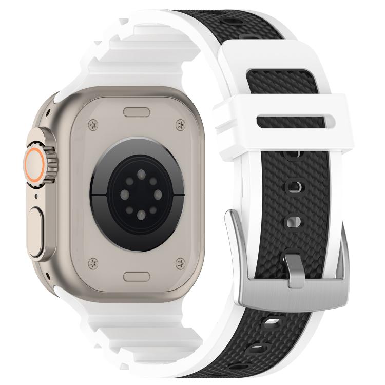 Correa de silicona bicolor con textura de diamante para Apple Watch de 46 mm, 49 mm, 45 mm y 44 mm (blanco y negro)