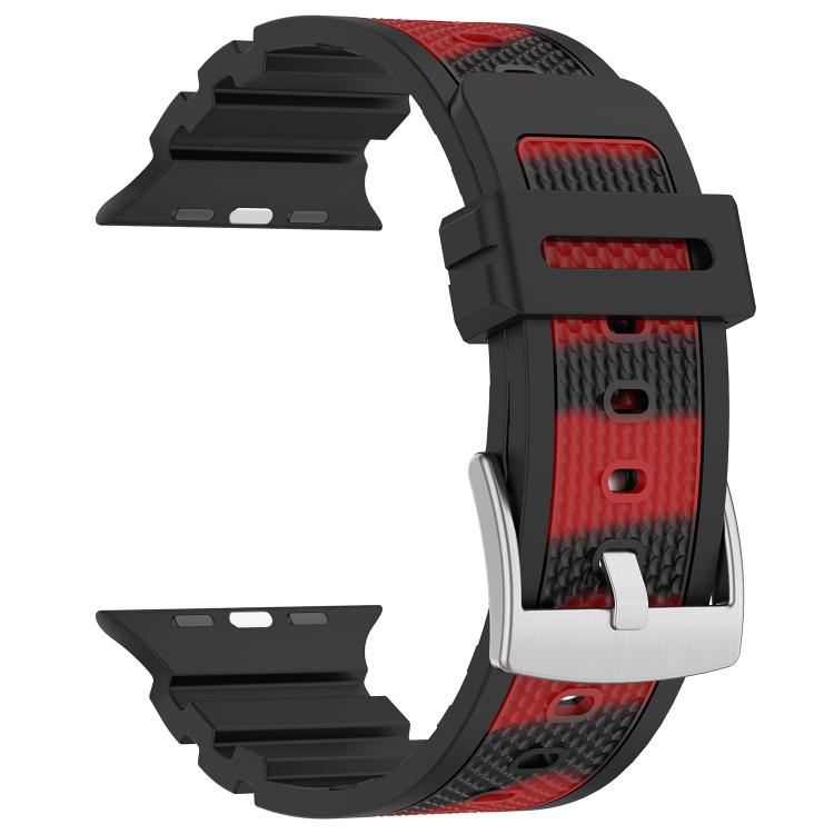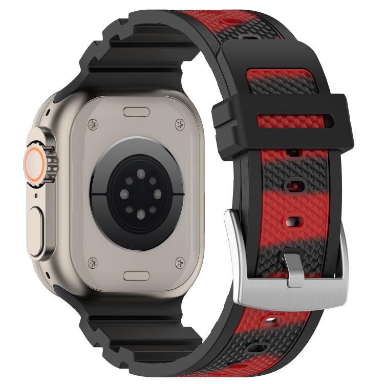 Correa de silicona bicolor con textura de diamante para Apple Watch de 46 mm, 49 mm, 45 mm y 44 mm (camuflaje, negro y rojo)