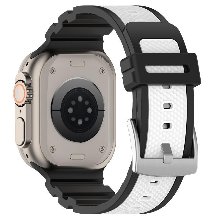 Correa de silicona bicolor con textura de diamante para Apple Watch de 46 mm, 49 mm, 45 mm y 44 mm (negro y blanco)