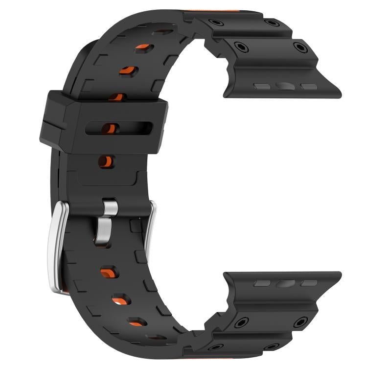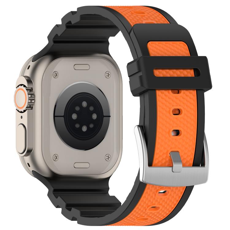 Correa de silicona bicolor con textura de diamante para Apple Watch de 46 mm, 49 mm, 45 mm y 44 mm (negro y naranja)