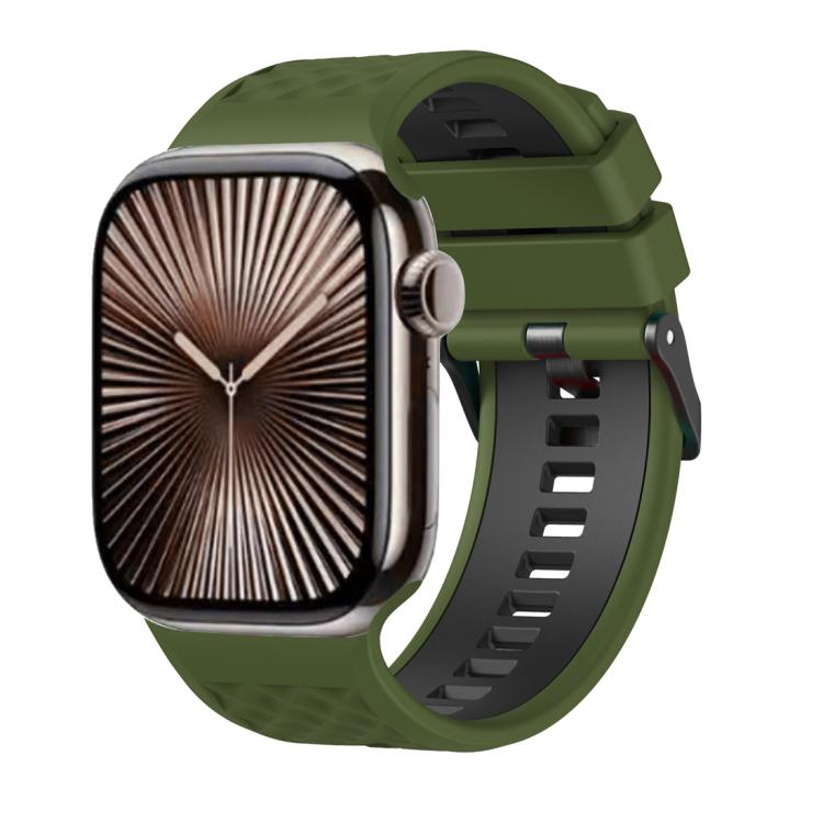 Correa de silicona bicolor con textura de diamante para Apple Watch de 46 mm, 49 mm, 45 mm y 44 mm (verde militar y negro).