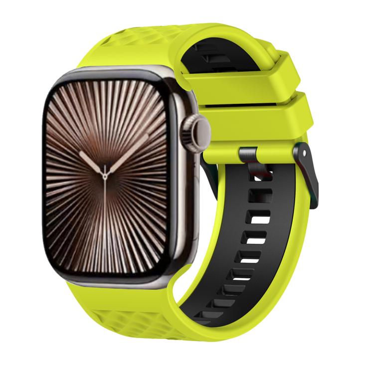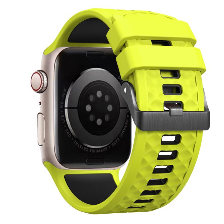 Correa de silicona bicolor con textura de diamante para Apple Watch de 46 mm, 49 mm, 45 mm y 44 mm (verde y negro).