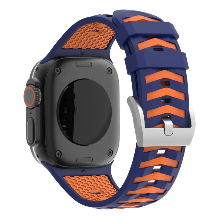Correa de silicona bicolor con textura de neumático para Apple Watch de 42 mm, 41 mm, 40 mm y 38 mm (azul medianoche y naranja)
