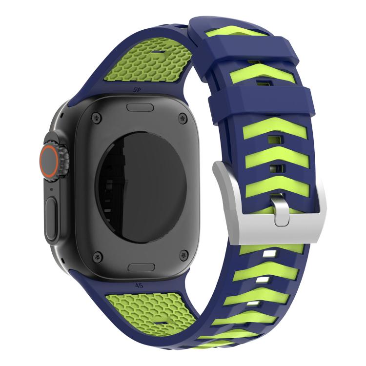 Correa de silicona bicolor con textura de neumático para Apple Watch de 42 mm, 41 mm, 40 mm y 38 mm (azul medianoche y verde lima)