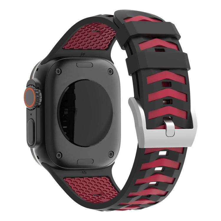 Correa de silicona bicolor con textura de neumático para Apple Watch de 42 mm, 41 mm, 40 mm y 38 mm (negro y rojo intenso)