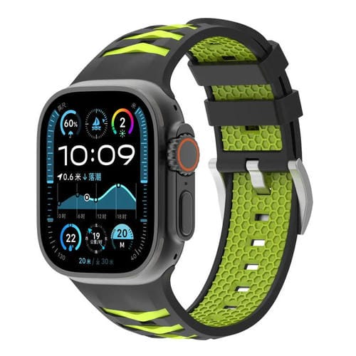 Correa de silicona bicolor con textura de neumático para Apple Watch de 42 mm, 41 mm, 40 mm y 38 mm (negro y verde lima)