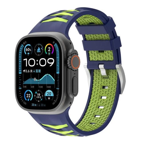 Correa de silicona bicolor con textura de neumático para Apple Watch de 46 mm, 49 mm, 45 mm y 44 mm (azul medianoche y verde lima)