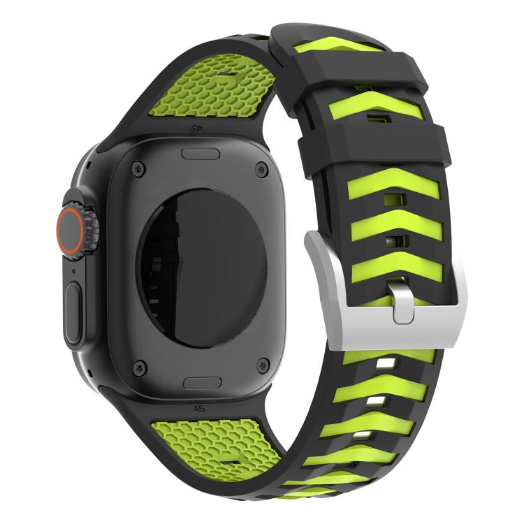 Correa de silicona bicolor con textura de neumático para Apple Watch de 46 mm, 49 mm, 45 mm y 44 mm (negro y verde lima)