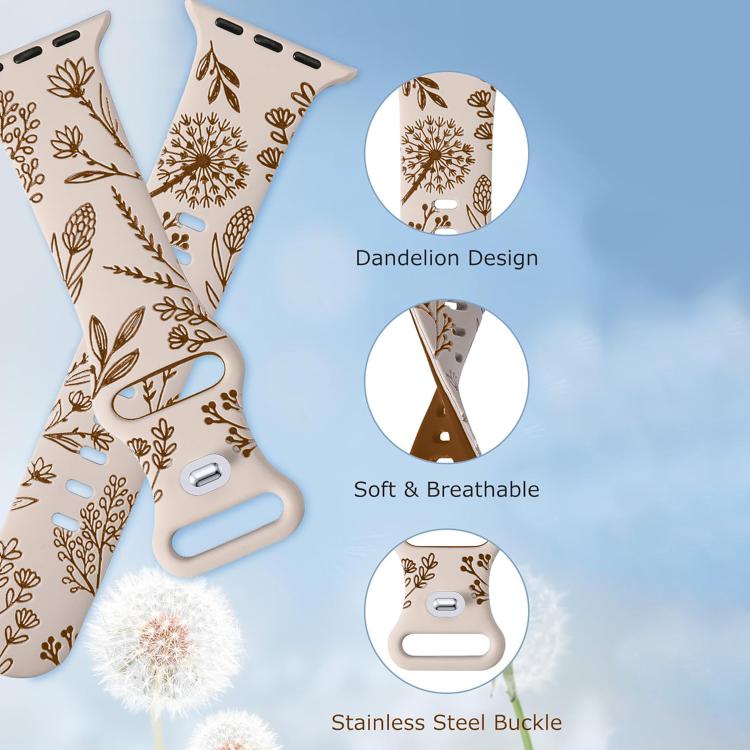 Correa de silicona bicolor grabada con diente de león para Apple Watch de 42 mm / 41 mm / 40 mm / 38 mm (Caramelo Estelar)