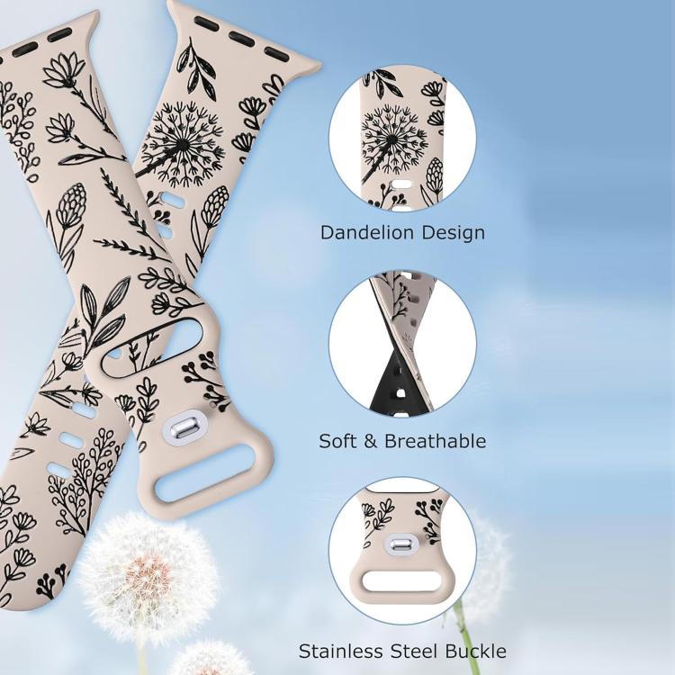 Correa de silicona bicolor grabada con diente de león para Apple Watch de 46 mm / 49 mm / 45 mm / 44 mm (Negro estelar)
