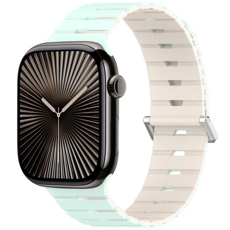 Correa de silicona bicolor magnética estilo melódica para Apple Watch de 42 mm / 41 mm / 40 mm / 38 mm (verde menta pálido brillante).