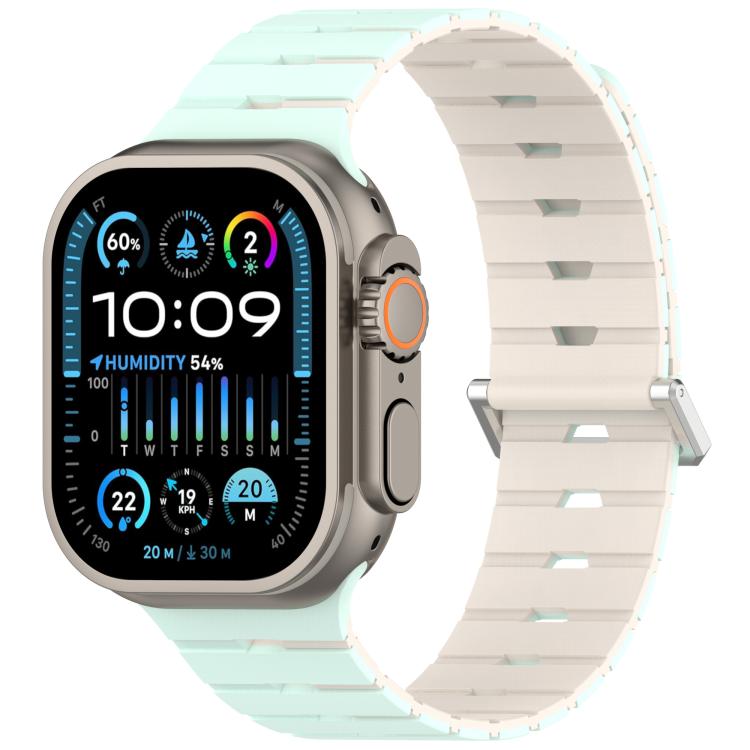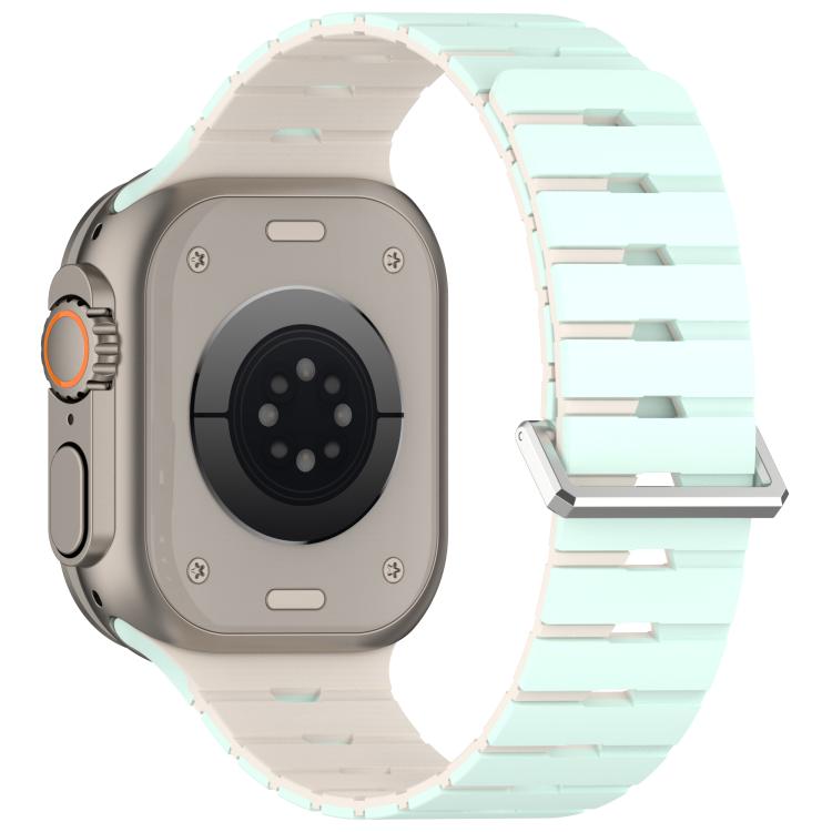 Correa de silicona bicolor magnética estilo melódica para Apple Watch de 46 mm / 49 mm / 45 mm / 44 mm (verde menta pálido brillante).