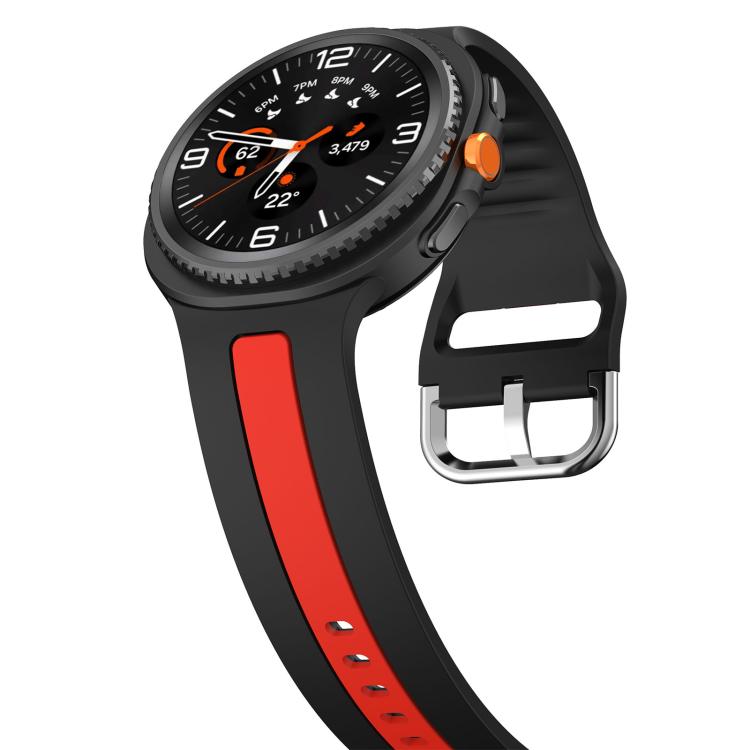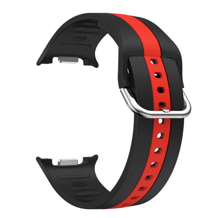 Correa de silicona bicolor para Samsung Galaxy Watch8/Watch8, con hebilla plateada clásica y rayas verticales (negro y rojo)