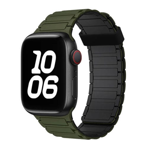 Correa de Silicona con Aro Magnético de Tres Cuentas para Apple Watch Se 40mm (Verde Militar y Negro)