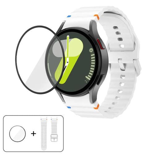 Correa de silicona con costuras onduladas y película curva 3D para Samsung Galaxy Watch5 de 40 mm (blanca)