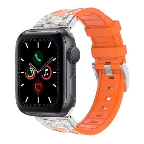 Correa de Silicona Apple Watch Series 5 44mm Diseño Cielo Estrellado Diamantes (Naranja)