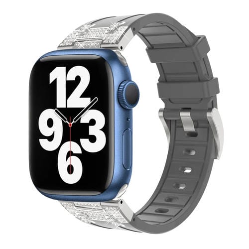 Correa de Silicona Apple Watch Series 7 45mm Diseño Cielo Estrellado Diamantes (Gris)