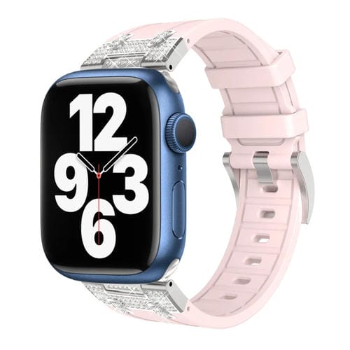 Correa de Silicona Apple Watch Series 7 45mm Diseño Cielo Estrellado Diamantes (Rosa)