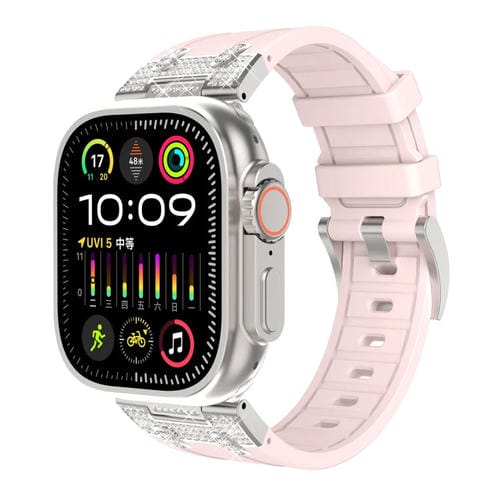 Correa de Silicona con Diseño de Cielo Estrellado y Diamantes para Apple Watch Ultra 49mm (Rosa)