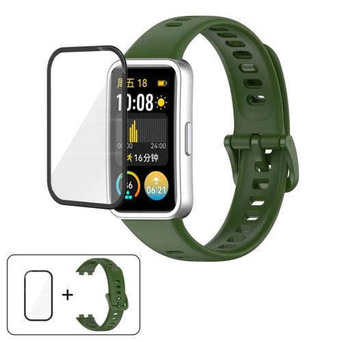 Correa de silicona con hebilla colorida y película curva 3D para Huawei Band 10/10 NFC (verde oscuro)