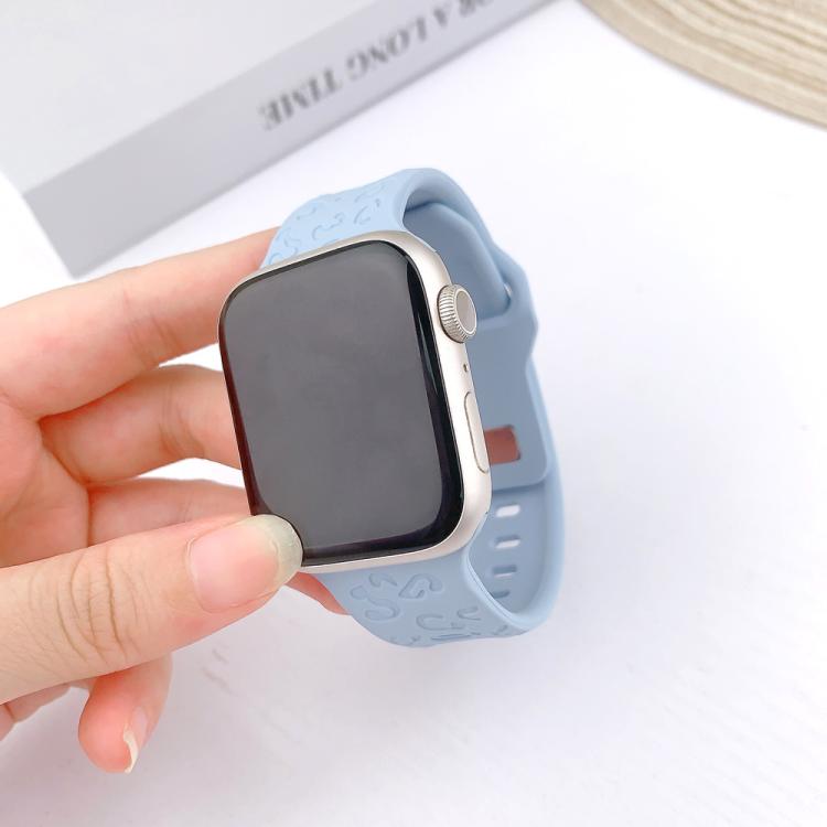 Correa de silicona con hebilla cóncava de leopardo para Apple Watch de 42 mm, 41 mm, 40 mm y 38 mm (azul claro)