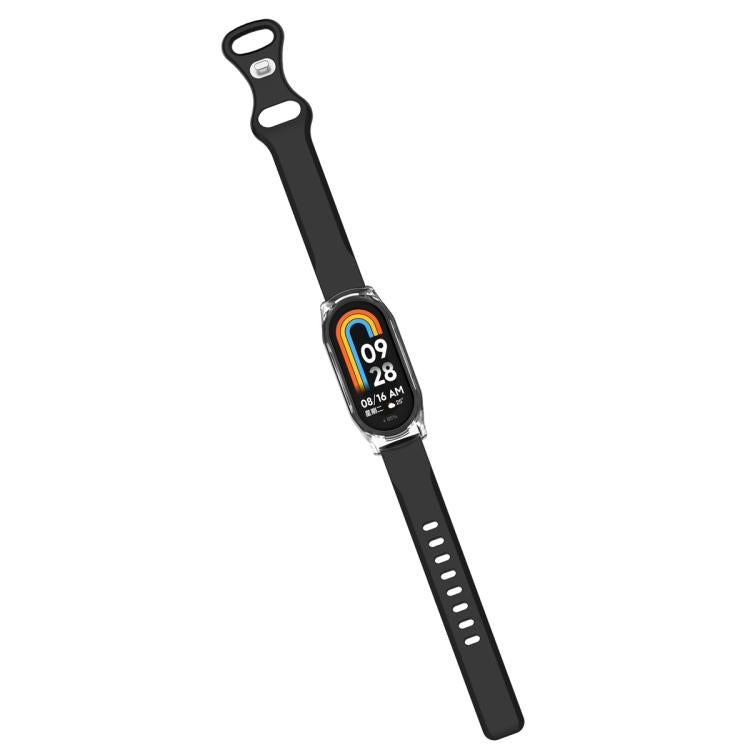 1. Material: correa de silicona + caja transparente, ajuste perfecto.