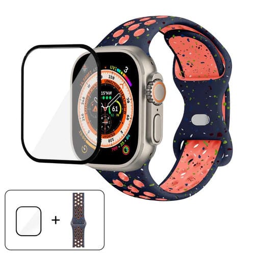 Correa de silicona con hebilla de mariposa y puntos de color para Apple Watch Ultra 2/1 de 49 mm con película curva 3D (naranja y azul)