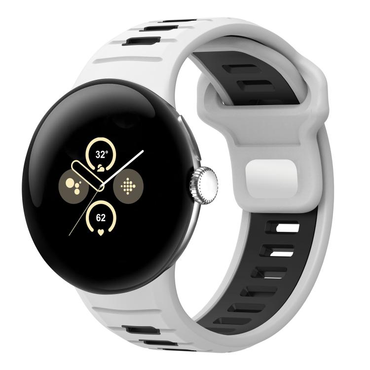 Correa de silicona con hebilla inversa de dos colores para Google Pixel Watch 3 de 45 mm (blanco y negro)