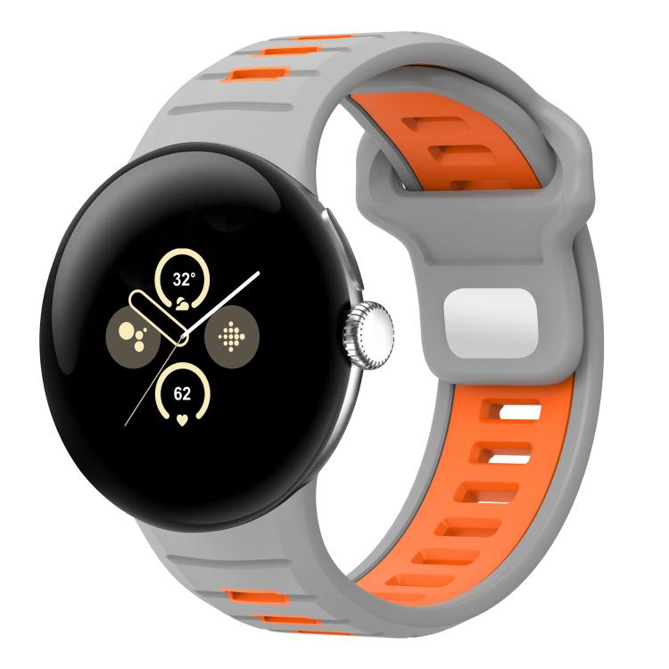 Correa de silicona con hebilla inversa de dos colores para Google Pixel Watch 3 de 45 mm (gris y naranja)