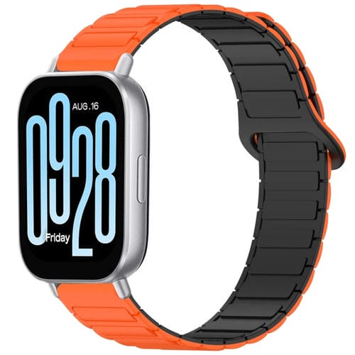 Correa de silicona con hebilla magnética de dos colores para Redmi Watch 5 Active (naranja y negro)