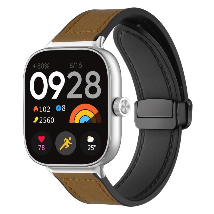 Correa de silicona con hebilla magnética y diseño de caballo loco para Xiaomi Smart Band 9 Pro/8 Pro/Redmi Watch 5/4 xDfind (marrón claro)