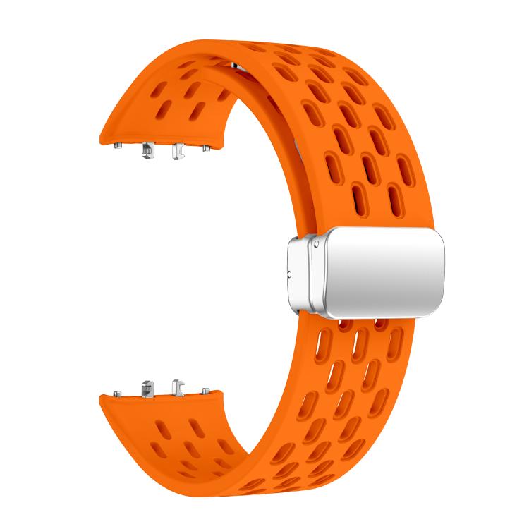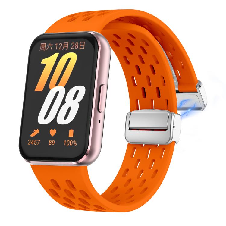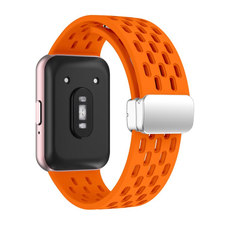 Correa de silicona con hebilla plateada magnética de malla xDfind para Samsung Galaxy Fit 3 (naranja)